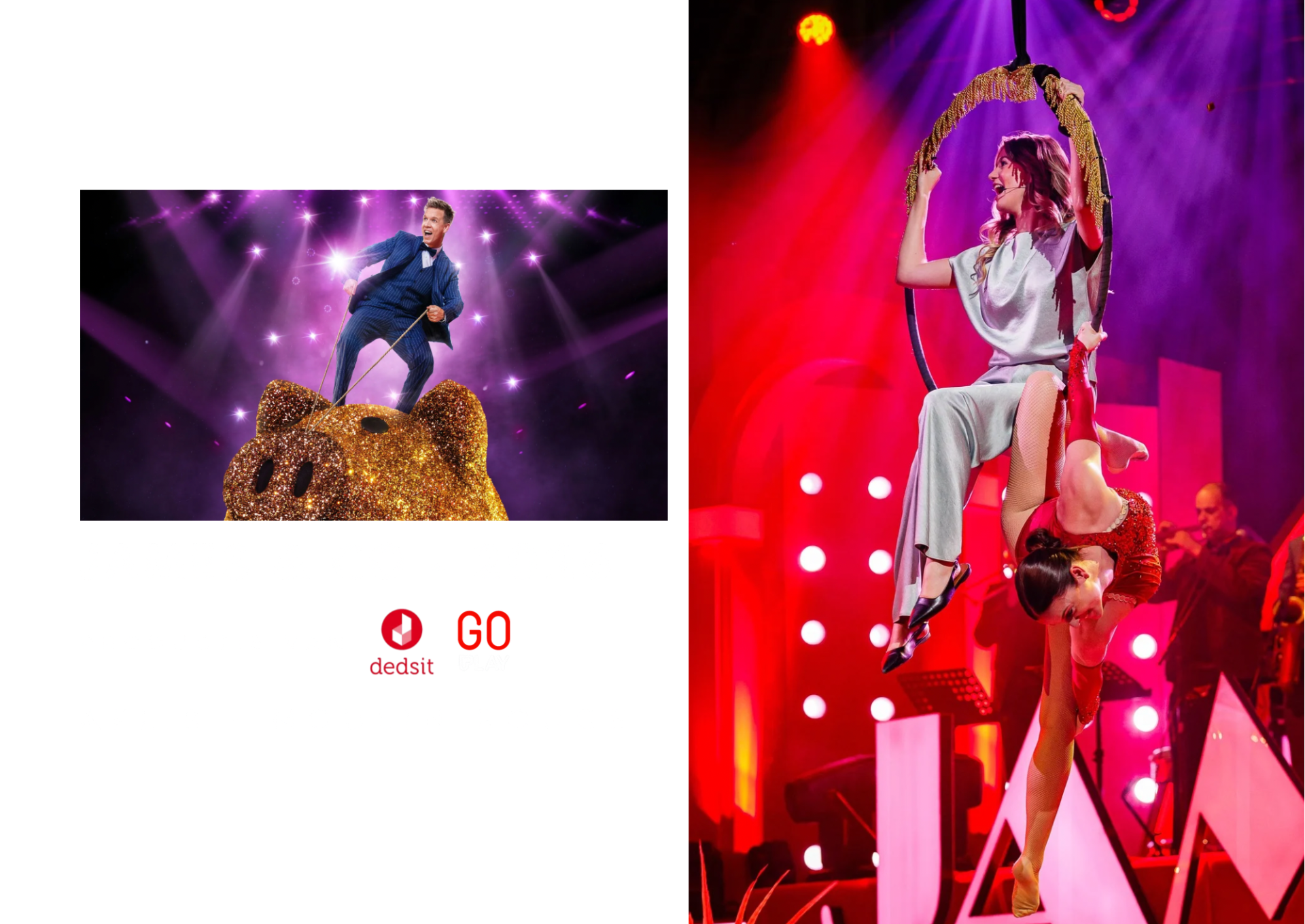 Hieronder vindt u enkele van onze indrukwekkendste referenties – al is dit slechts een greep uit onze ervaringen. We stonden op het podium bij James & Co, schitterden in de glamoureuze Winterrevue van Backstage Producties, en brachten onze luchtacrobatie act naar duizenden toeschouwers in de Lotto Arena, samen met Christoff.